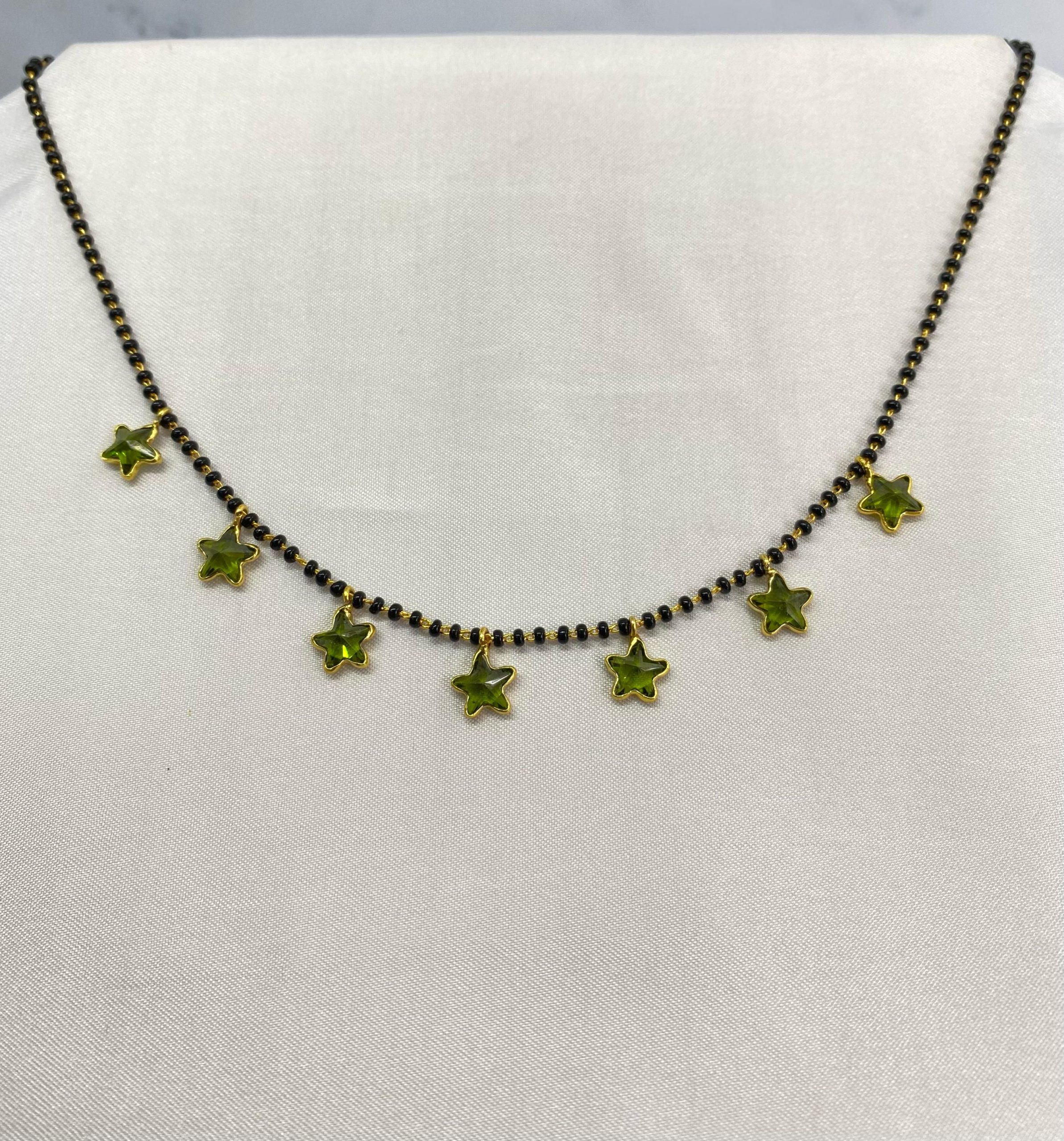 • Design Type: Minimalistic black beads mangalsutra with dangling green star charms