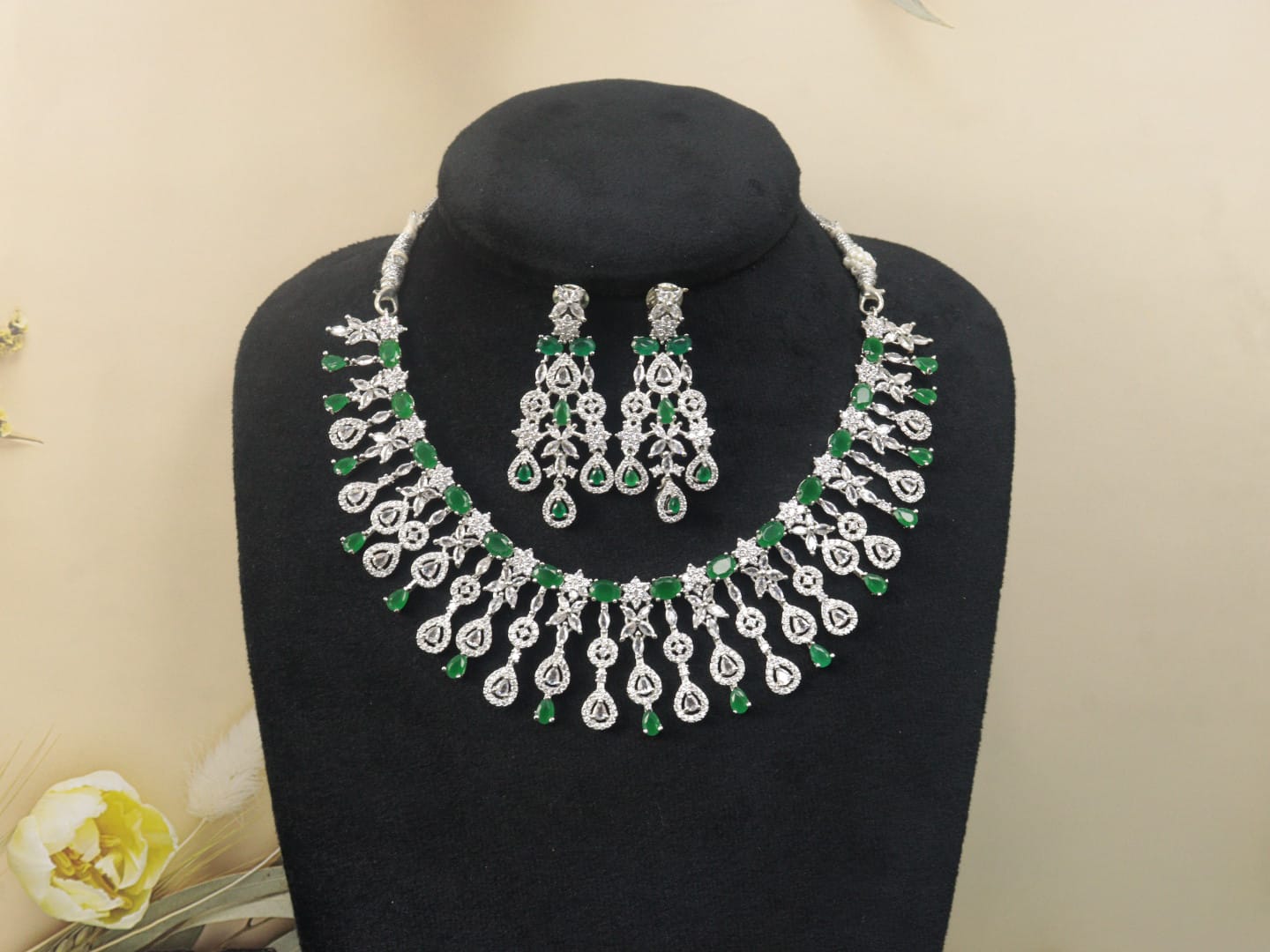 present a masterpiece of elegance and tradition — the Emerald Grace Silver Short Necklace Set.