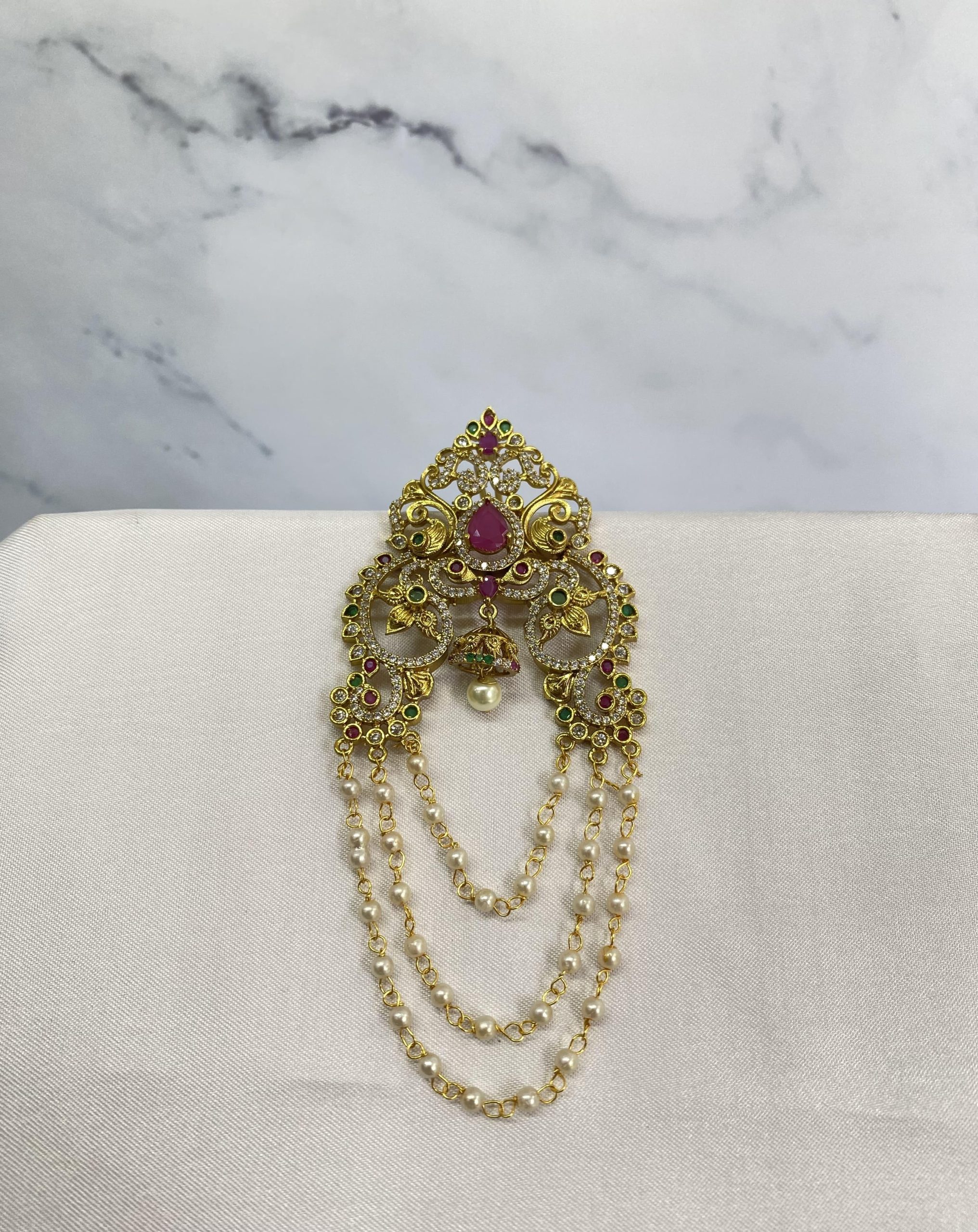 The cascading pearl chains add a graceful charm, making this hair ornament a perfect complement to traditional hairstyles like braids or buns during weddings, classical dance recitals, festivals, and poojas. Each detail reflects the artisan brilliance of Begumbazar’s famed jewelry makers, bringing you heritage artistry with contemporary finesse.
